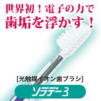 世界初!電子の力で歯垢を浮かす![ソラデー3本体]世界初!電子の力で歯垢を浮かす!【送料・手数料いりません!】 価格: 1,995円 レビュー評価: 0.0 レビュー数:0 品名 ソラデ?3 名称 イオン歯ブラシ サイズ たて(約)17.6×よこ(約)1.6×高さ(約)1.4cm 主材 [本体]アクリル樹脂、ステンレス [ブラシ]ナイロン、アクリル樹脂 重量 (約)20g 定価 ¥1,995 (税込) 発売元 株式会社グリム 製造国 中国(ブラシ部・日本製) 【keyword】ソラデー、歯垢、プラーク、除去、半導体、ソーラーパネル、電子、イオン、電子作用、光触媒、ブラッシング効果、歯、歯ブラシ、歯ぶらし、ピカピカ、口中、口臭、予防、原因、口の中、S.ミュータンス菌、ミュータンス、虫歯、虫歯菌、歯周病、ネバネバ、歯垢除去、ツルツル、ソブリヌス Supported by 楽天ウェブサービス |
